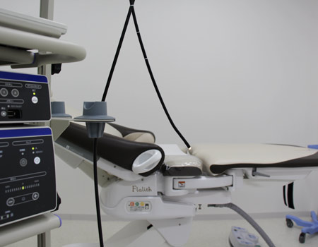 軟性の内視鏡を用いますので、従来の硬性内視鏡に比べて苦痛の少ない検査が可能です。快適に検査を受けていただけるよう配慮した検査台をご用意しております。