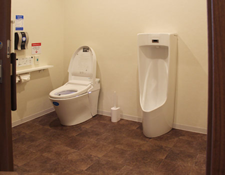 男性用、女性用とも、車いすでもご利用いただける広いトイレです。